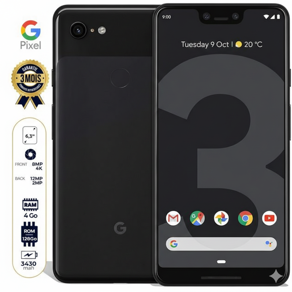 The Google Pixel 3 XL is the first smartphone in the Pixel range to be officially available in France. Compared to its predecessor, it features a dual front-facing camera of 8MP+8MP with a wide-angle lens, Qi wireless charging compatibility, and a Snapdragon 845 SoC backed by 4GB of RAM.